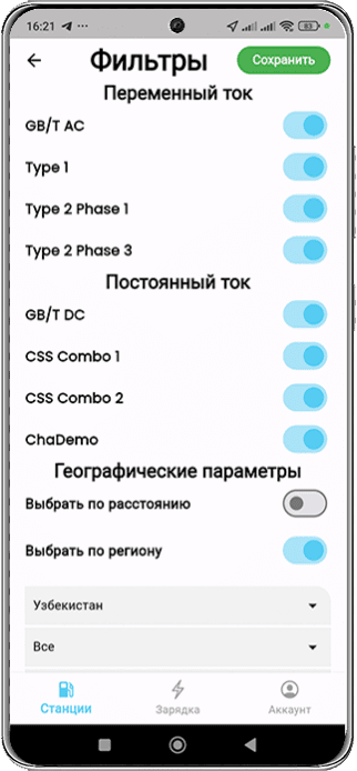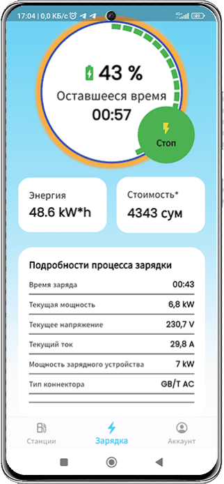 Приложение позволяет производить мониторинг всех доступных зарядных станций и устройств, вне зависимости от их модели и типа коннектора.